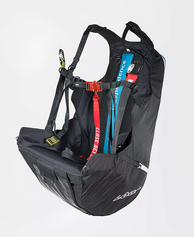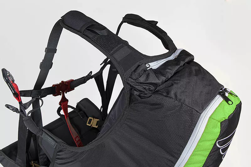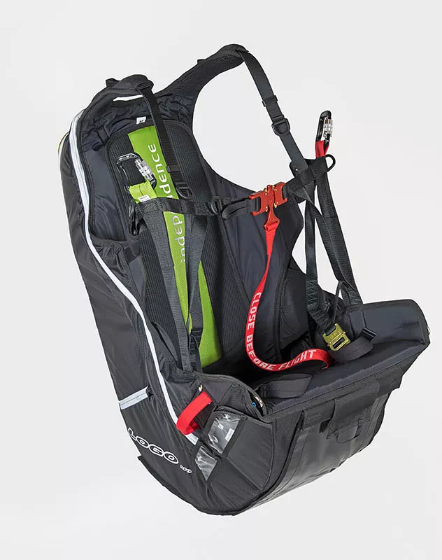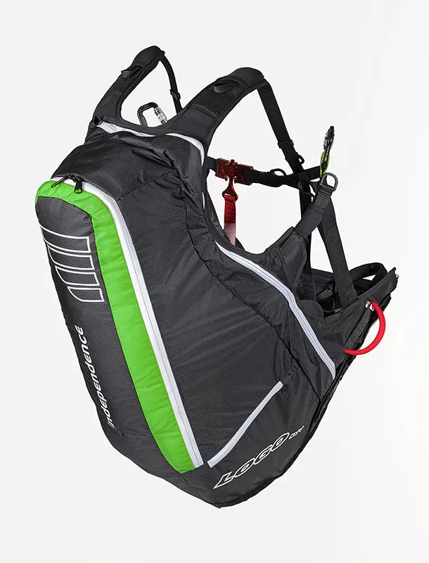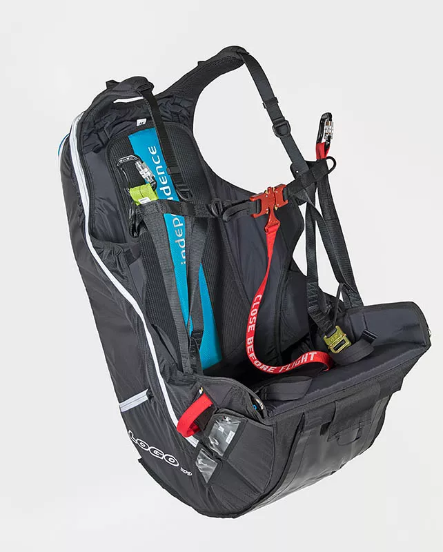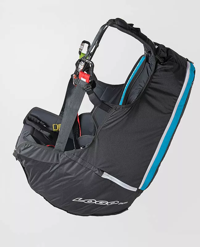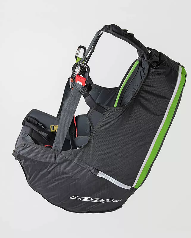 Cintas claramente dispostos e organizados, marcam o nosso arnês parapente Logo pro. Ajustes reduzidos e, portanto, fáceis de manusear são a base para movimentos suaves durante a decolagem e a aterragem.