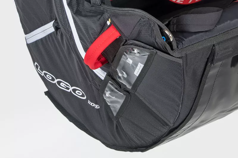 O protetor dorsal da Logo Pro é generosamente dimensionado, proporcionando assim uma ótima segurança sem restringir os movimentos dos pilotos. A parte traseira ergonômica torna cada informação da asa claramente percetível.
