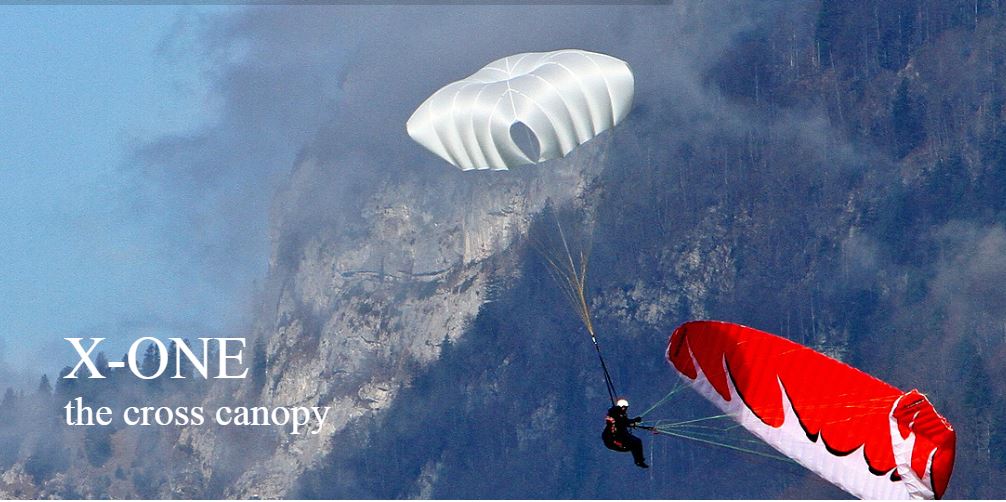 Com este conhecimento adquirido, conseguimos desenvolver uma versão revista, o X-ONE. Conseguimos reduzir o peso total e simplificar o método de acondicionamento, pelo que agora o acondicionamento se assemelha a um paraquedas redondo. Além disso, conseguimos, através de detalhes de design, aumentar a capacidade MÁXIMA de carga e manter a incomparável estabilidade pendular do paraquedas cross.